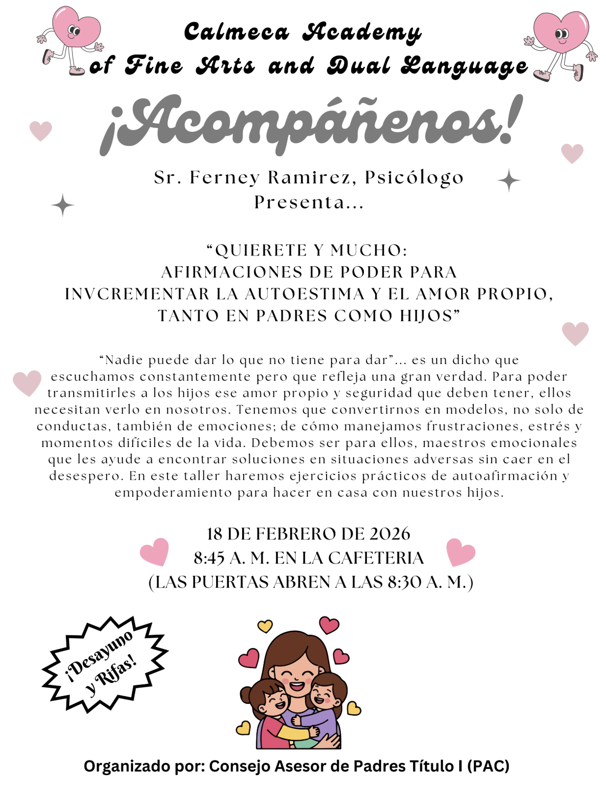 PAC Meeting/ Reunion de padres PAC 02/18/26 @ 8:45am